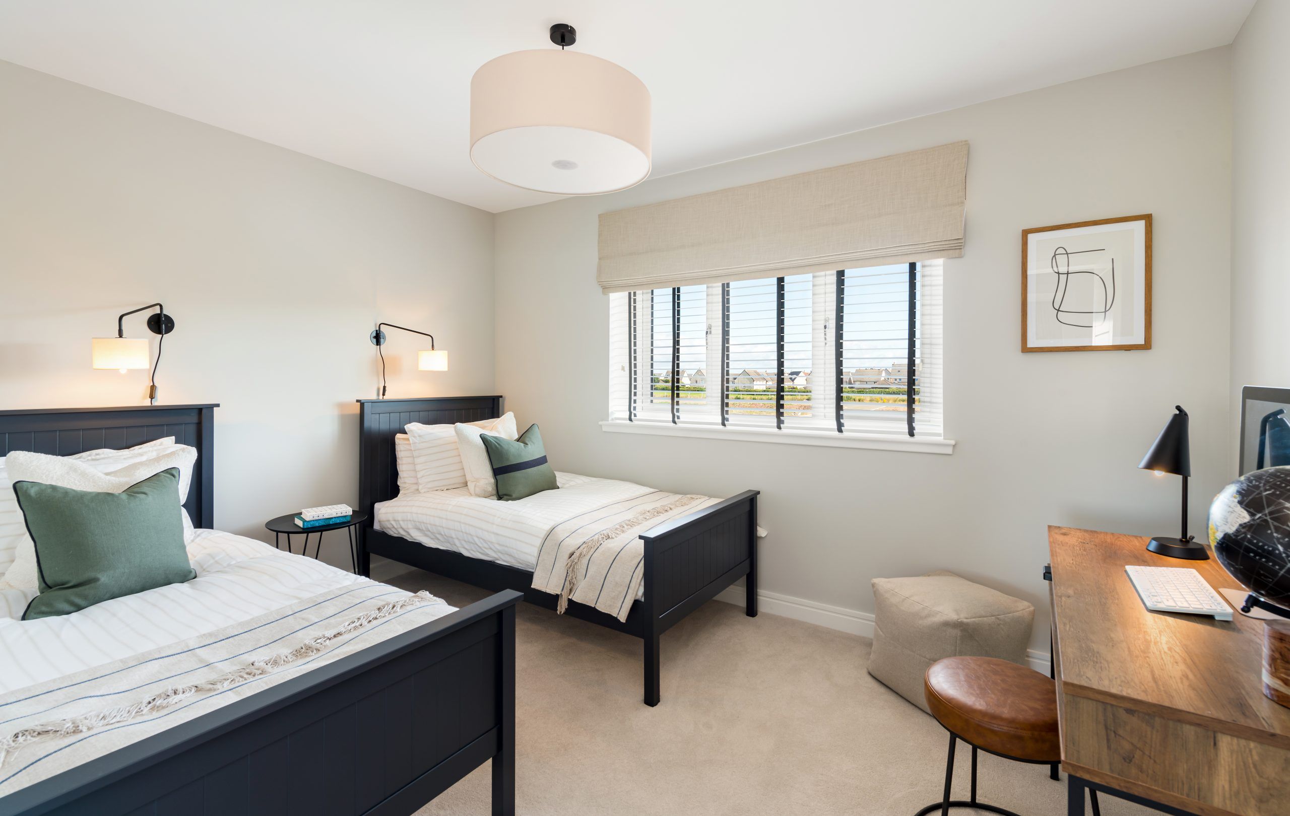 On the first floor of this stylish home there are three bedrooms and  a family bathroom. Bedroom two offers an optional fitted wardrobe. Bedroom three, spacious in size, also offers the option to add in an additional wardrobe.